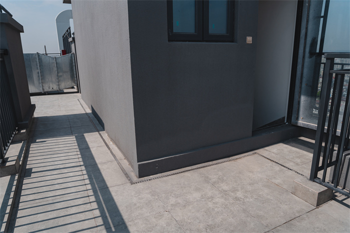 最后,小编爬上了屋顶,准备看看这视角难得的江景,竟然又发现了一个小细节:中海九樾在完成所有的功能性面层之后又铺上了一道面砖,相当于是又多加了一道防水、防老化的面层,这在市面上都是难得一见的。