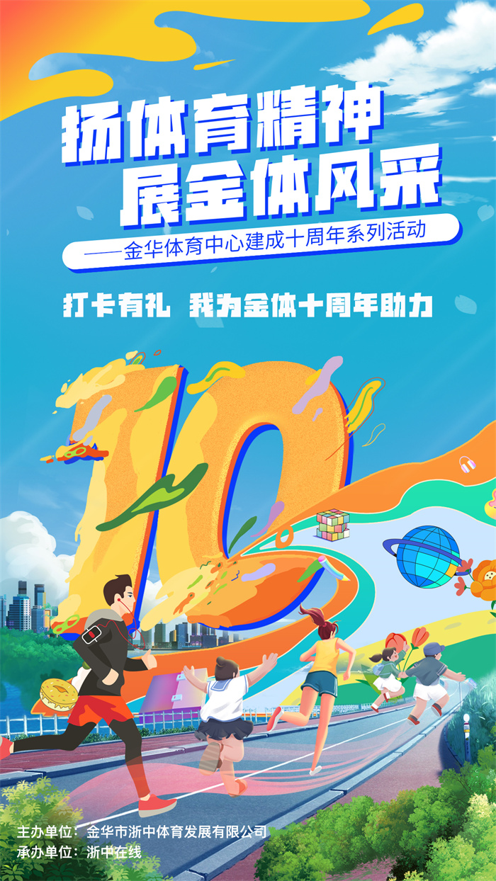 十年勇毅前行,十年成就辉煌。为了让广大市民共享金华体育中心10年发展成果,推动我市全民健身体育事业蓬勃发展,特此开展“初心十周年 金体新出发”金华体育中心建成10周年系列活动之“我为金体十周年助力”打卡有礼活动。