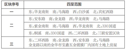(一)房屋征收范围:共分为 3 个区块,具体情况详见 2023 年 8 月 3 日《金华日报》A2 版。
