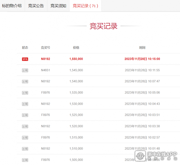 本场拍卖吸引了11人报名,5651次围观,最终竞价71轮后,最终以155万元成交,低于评估价10万元。