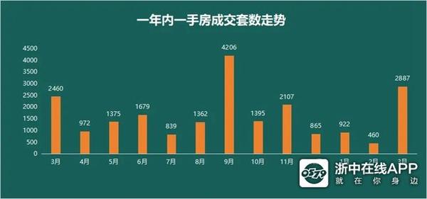 刚刚结束的3月,金华市区一、二手住宅网签共计3787套,环比上涨349.76%。