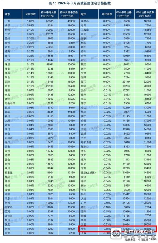 根据指数研究院公布的3月百城房价数据,金华持续下跌走势,其中新建住宅样本平均价格12828元/㎡,环比下跌0.58%,比金华跌幅更大的仅长春一城。