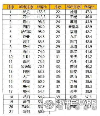 根据上海易居研究院数据统计,截至3月份,在百城样本城市中,有41个城市去化周期超过36个月,多为三四线城市,其中,韶关、西宁、舟山、洛阳、哈尔滨、嘉善、晋江、 泉州、唐山和江阴,此类城市去化周期普遍超过3年的水平。此外,去化周期超36个月的城市还包括福州、武汉等,我们金华也在榜。