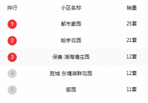 从公布的数据看,在二手市场较为热门的小区分别为都市豪园、铂宇花园、保集·湖海塘庄园、胜城·东塘湖畔花园、御园等项目。