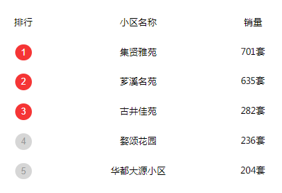 从公布的数据看,这个月新房成交排名靠前的项目,分别为集贤雅苑、芗溪名苑、古井佳苑、婺颂花园、华都大源小区等。