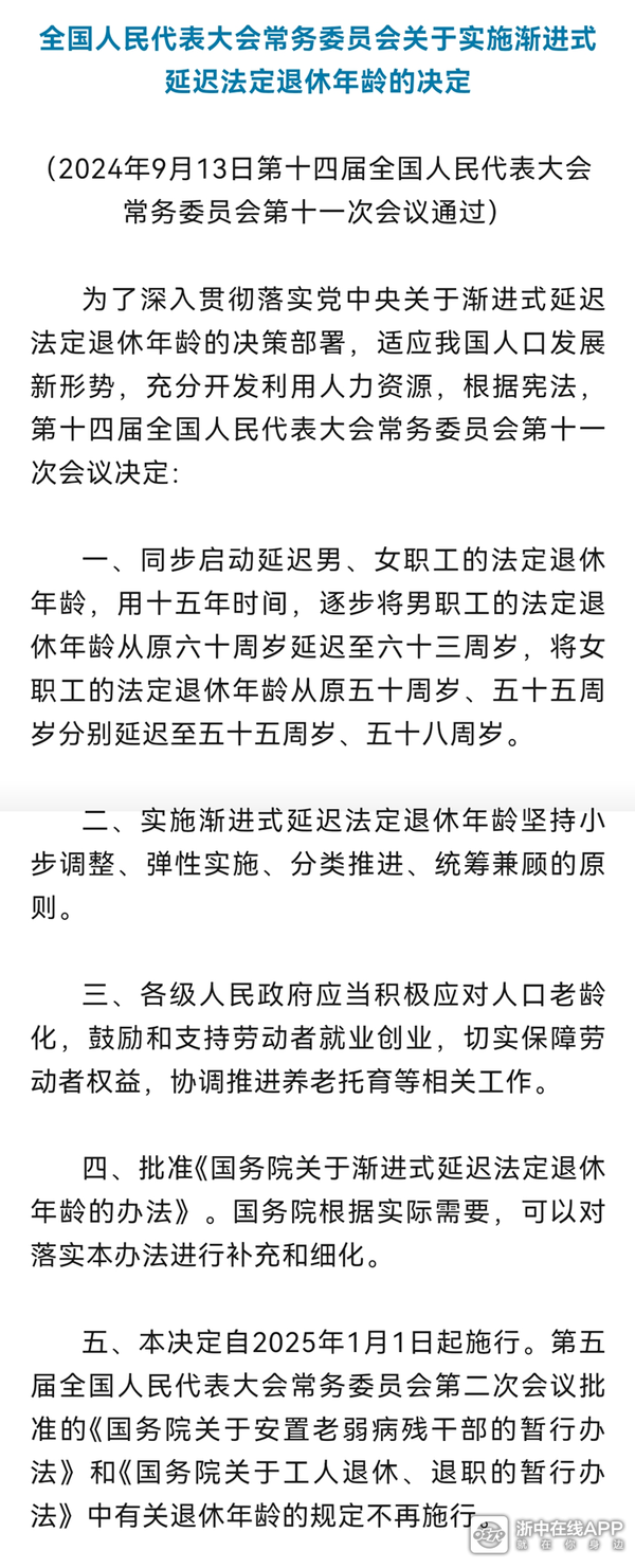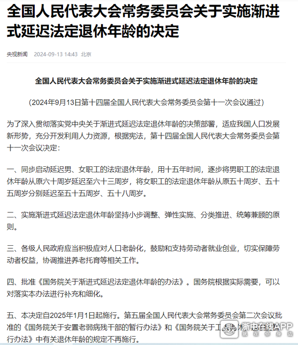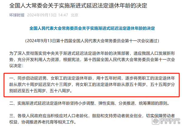 近日,《中共中央关于进一步全面深化改革 推进中国式现代化的决定》明确提出“按照自愿、弹性原则,稳妥有序推进渐进式延迟法定退休年龄改革”。