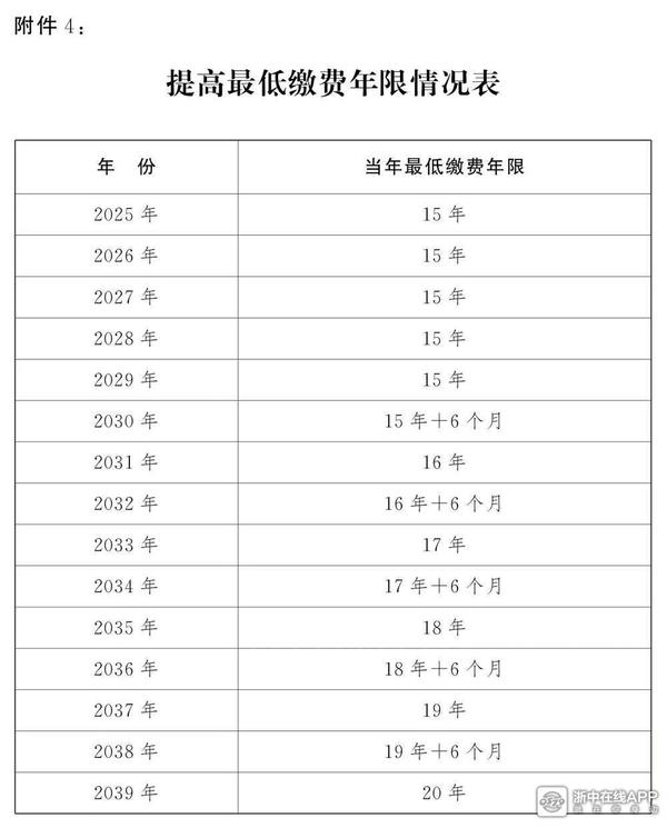 2、从2030年1月1日起,将职工按月领取基本养老金最低缴费年限由十五年逐步提高至二十年,每年提高六个月。职工达到法定退休年龄但不满最低缴费年限的,可以按照规定通过延长缴费或者一次性缴费的办法达到最低缴费年限,按月领取基本养老金。