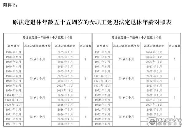 • 1、用十五年时间,逐步将男职工的法定退休年龄从原六十周岁延迟至六十三周岁,将女职工的法定退休年龄从原五十周岁、五十五周岁分别延迟至五十五周岁、五十八周岁