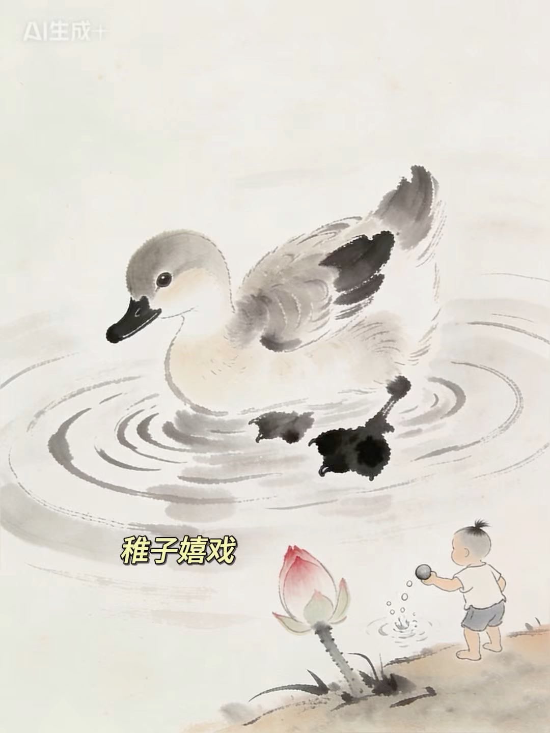 童趣盎然:小鸭子嬉戏,孩童乐在其中