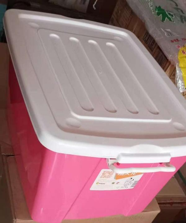 粉色塑料箱,大约尺寸:长58*宽42*高31CM,转让价15元;