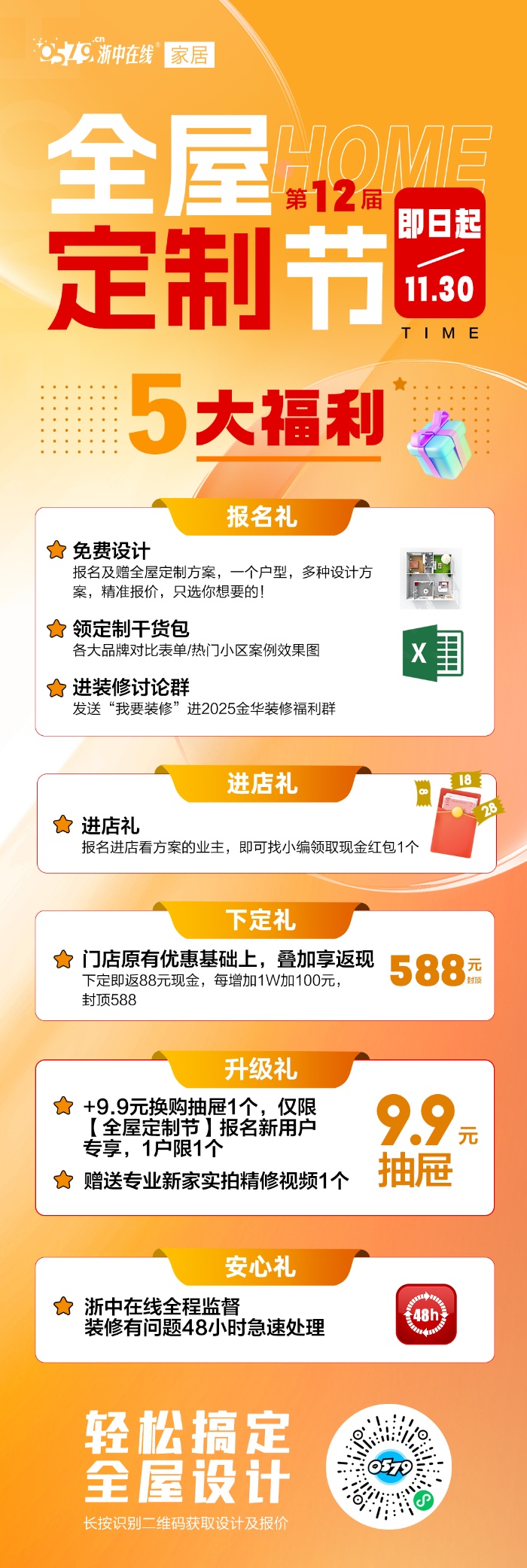 一线品牌+本地工厂,第12届【全屋定制节】来咯,报名专享5大福利,9.9元超值换购+最高588元返现~