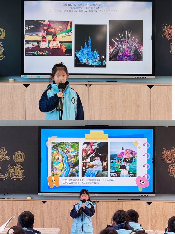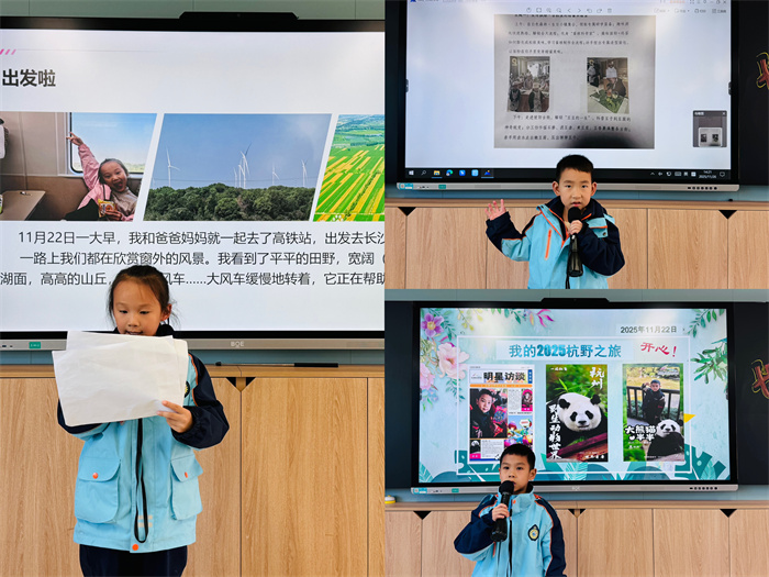 这场“秋日足迹·世界印象”主题分享会,不仅让孩子们重温了秋假的快乐时光,更锻炼了观察能力、表达能力和创造力。正如汪老师所说:“最好的学习,是让孩子用脚步去探索,用心灵去感受。” 当课堂不再局限于四方课桌,当知识来源于真实的生活体验,学习就变成了一件充满乐趣的事情。期待未来有更多精彩的课堂,让每一个孩子都能在探索中收获知识,在表达中绽放光芒!