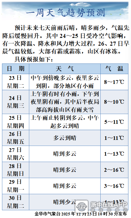 金华今天要下雪?