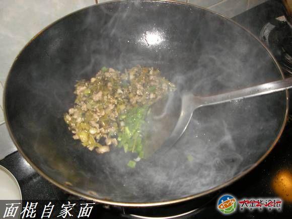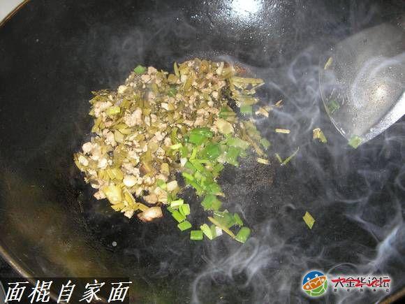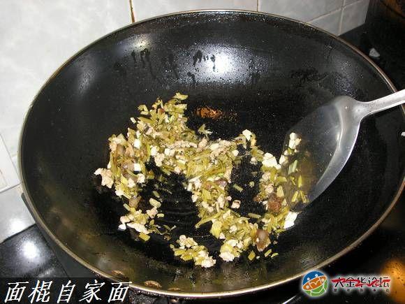 浇头要同步炒作,煸炒出香味来,适当添加蒜头和葱花或者辣椒