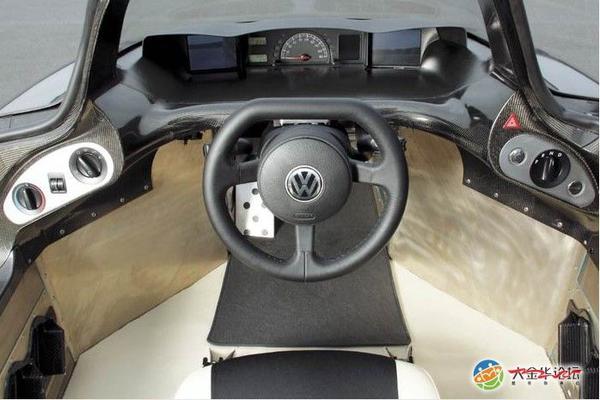 1升车采用双氙头灯,仅32瓦特,效果却等同于传统的60瓦特头灯。整个头灯元件都由聚碳酸酯制成,重量仅仅有1500克。 日光灯,所有的转向信号灯以及后灯簇都采用了LED技术。车内照明也同样采用LED,当在晚上打开车门时还会有电子发光 金属片提供必要照明。更多的技术则展现在摄像系统中,该系统有自动识别功能可自动的解锁鸥翼车门以及点火键。车内 采用了整洁,运动的设计能为2个人提供足够的空间。塔式的玻璃车顶由聚碳酸酯制成并有防紫外线功能。座椅采用镁金 属结构以减轻重量。后座乘客可以很舒适的将脚放在位于驾驶位2旁的脚凳上面。驾驶员面对的是一个平顶的方向盘,座 舱的风格就好像置身于一台喷气式飞机上。中央圆形仪表的左右2边是2台显示屏提供后视图像,在前面右边控制台上的是 换档开关,电子手刹开关以及启动键。左边控制加热,通风以及车内灯照明。