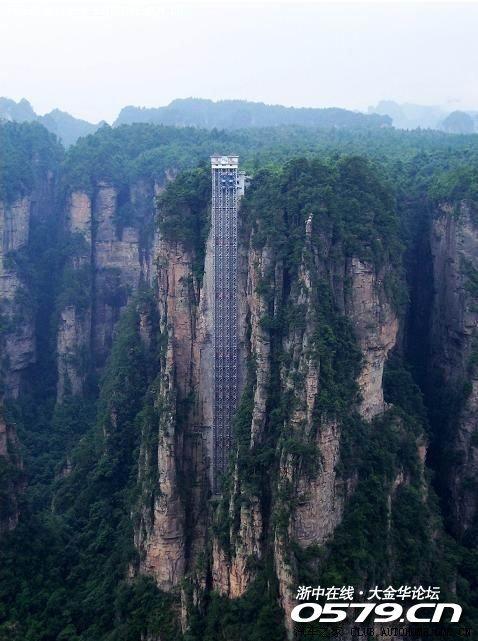 这一天路线 ,首先游的是金鞭溪,沿溪而上主要景点有母子峰、猪八戒背媳妇、神鹰护鞭、金鞭岩、醉罗汉、师徒取经、劈山救母、蜡烛峰、长寿泉、秀才藏书、文星岩、双龟探溪、紫草潭、千里相会,这一路其中一段路有许多猴子,比四川省峨眉山的猴子还要多。要注意手上的东西,否则一不留神,猴子就会冲上来抢东西,会吓你一跳。到了 “千里相会”,可以选择爬山(乱串坡),有3200级台阶,三分之二的台阶平缓,盘旋而上,有三分之一的台阶比较陡, 沿途有休息点,小吃等,一个小时直达山顶。想节省体力也可以选择坐百龙电梯(56元)上山。从时间上来说是差不多的。一到山顶,马上就有种心旷神怡的感觉,一扫疲劳,兴奋无比。