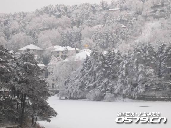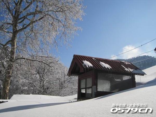 宾馆的院子,很大,我们住的是主楼,后面还有别墅间,厚厚的积雪覆盖台阶,不方便老人行走。