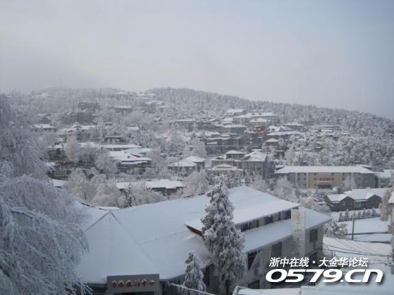 俯瞰雪中牯岭镇