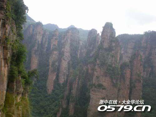 市区汽车站去张家界国家森林公园的车很多,十分钟一趟,票价每人10元,经过40多分钟的车程,抵达了森林公园大门口,展现在眼前的是一大片独立的石峰林。