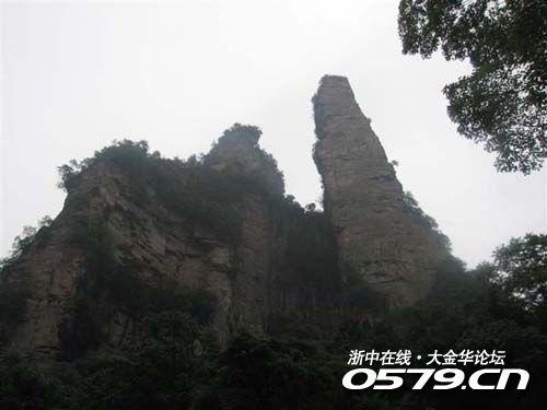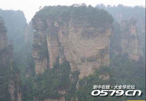 我们也见识了让金鞭溪得名的金鞭岩,一座独立的石峰拔地而起,直插云霄,就象古代战争用的鞭,天公不作美,没能看到宋导述说中夕阳照射在上面的那种金黄色。紧挨金鞭岩的是一座张开翅膀的老鹰,因对面还有一座山峰象醉酒的和尚,向金鞭岩倾斜15度,说是要想偷走金鞭,但因为有了老鹰的日夜守候,和尚也一直没有得逞,所以取名为神鹰护鞭。听宋导说有一位摄影师因为拍摄神鹰护鞭得了十万英磅的巨奖……