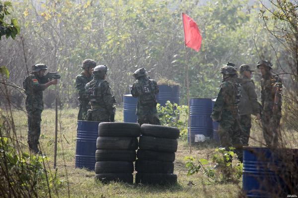 大家兴奋穿上迷彩军服,戴上头盔,拿起武器,走向战场。