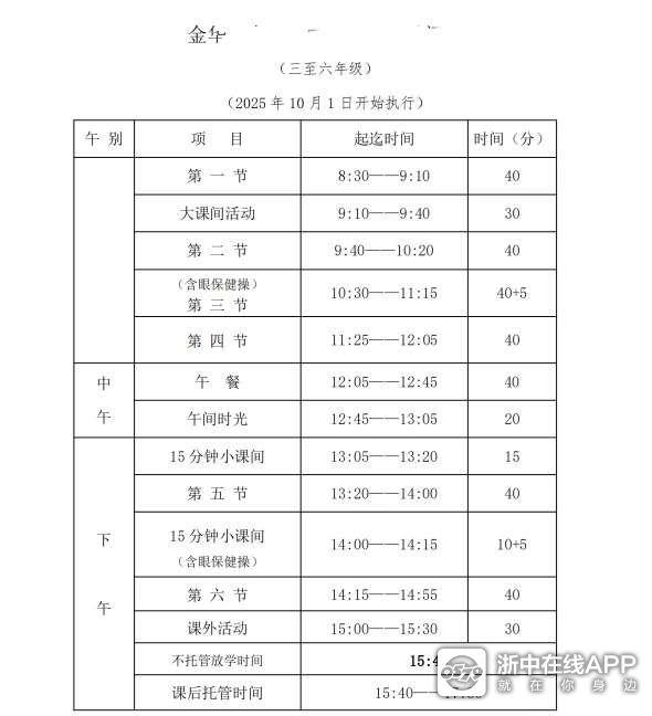 金华中小学春秋假时间定了