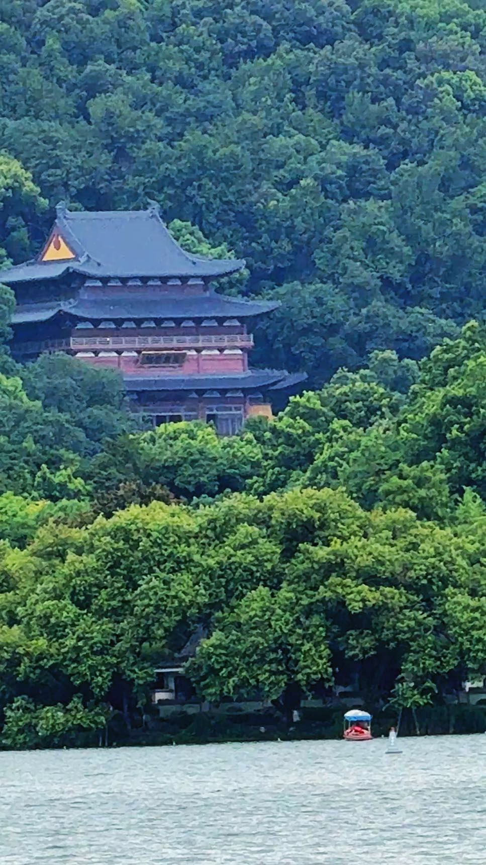 西湖畔,禅意与绿意撞个满怀。#西湖边#柳荫下#湖光里#亭台前#千年古刹