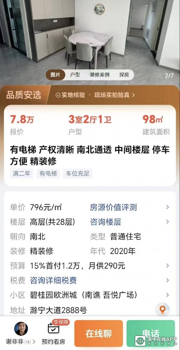 这里最贵卖到11000元一平米,一套80㎡的三房总价能卖到90万元,而现在呢?现在这些房子在中介上的挂牌价都只要7万了,折算单价875元一平米,你没看错,不是8750元,而是875元一平米,而且这还只是挂牌价,目前的行情不打个八折基本是卖不出的。当然了,小区唯一的不足就是它所在的行政区是安徽省的滁州市,不属于南京市,但是这里距离南京市 南京北站15公里。